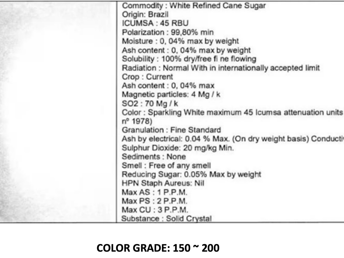 White Refined Cane Sugar 45 ICUMSA / Crystal Sugar 150 ICUMSA